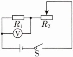 2. [2025·自贡期中改编]如图所示电路,电源电压不变,定值电阻$R_{1}= 30Ω$,滑动变阻器$R_{2}$的最大阻值为60Ω。闭合开关S,当滑片从最左边移动到最右边时,电压表示数从$U_{1}变为U_{2}$,则$U_{1}:U_{2}$为 (
