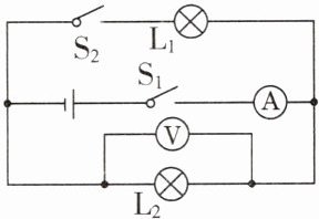 3. [2024·重庆]如图所示电路,电源电压保持不变,$L_{1}和L_{2}$是两个相同的小灯泡。先闭合开关$S_{1}$,记录两电表示数;再闭合开关$S_{2}$,电流表和电压表的示数变化情况是(