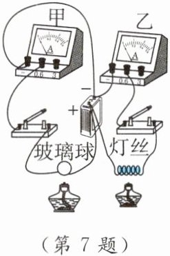 __(选填“甲”“乙”或“甲和乙”)指针偏转;点燃两酒精灯加热玻璃球和灯丝一段时间,甲表示数____变大