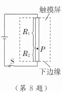 8. (模型建构)电阻触摸屏在笔记本电脑及手机等设备上已普遍使用,当手指在触摸屏表面施以一定的压力时,触摸屏通过分别识别触摸点的水平与竖直位置,从而确定触摸的位置。