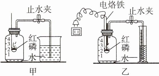 ④在燃烧匙内放入过量的红磷,塞紧瓶塞。夹紧止水夹,接通电源使电烙铁发热,点燃红磷后,断开电源。