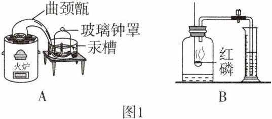 【经典赏析】拉瓦锡用图1中装置A定量研究了空气的成分。在密闭容器中,装置中的汞与空气中的氧气反应,生成固态物质,汞槽里的水银升入钟罩,而容器里的空气体积则减少了约$\frac{1}{5}$。