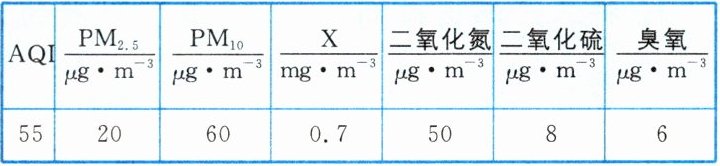 |AQI|$PM_2._5/μg·m⁻^3$|$PM_1₀/μg·m⁻^3$|$X/mg·m⁻^3$|二氧化氮$/μg·m⁻^3$|二氧化硫$/μg·m⁻^3$|臭氧$/μg·m⁻^3$|