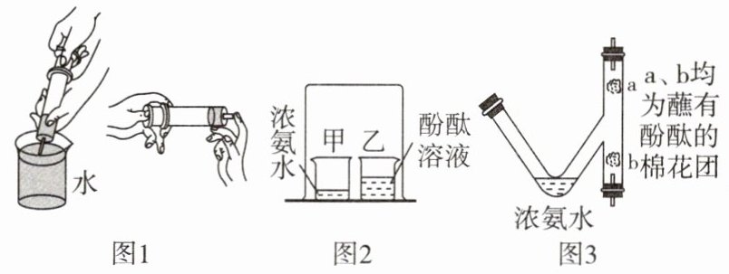 (3)小组同学对图2实验进行改进,共同设计了如图3实验,在实验中观察到a处的棉花团先变成红色,因为氨气密度比空气小,进入玻璃管后先向上运动。改进后的优点是节约试剂、更环保,为了快速观察到实验现象,可进行的操作是微热或加热V管处的浓氨水。