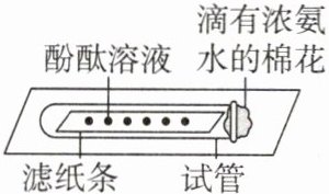 10. 如图所示,将滴有酚酞溶液的滤纸条放在试管中,试管口塞上一团滴有浓氨水的棉花,将实验装置放在一张白纸上,有关该实验的说法,错误的是()