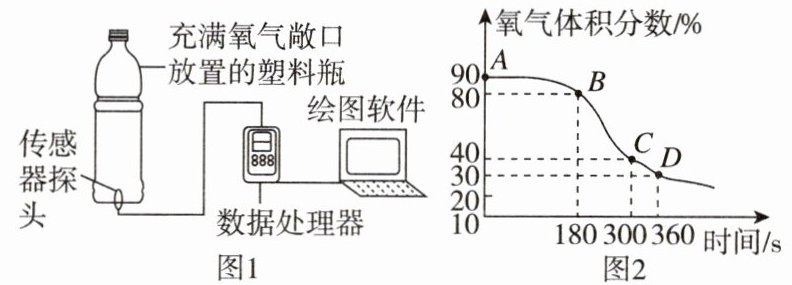 (1)按图1连接好实验装置,打开氧气传感器,测得前3分钟曲线为图2中AB段,请从分子的性质角度回答氧气体积分数下降的原因是______。