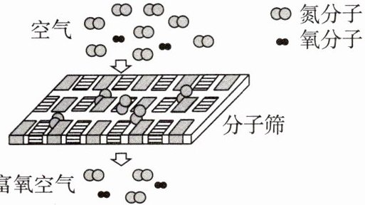 D 点拨:由题图可知,该过程是物理变化,分子大小未改变,A错误;该过程中分子种类没有发生变化,B错误;分子筛可以让氧分子和部分氮分子通过,故分子筛不是实心的,C错误;空气和富氧空气均由不同种分子构成,故都属于混合物,D正确。