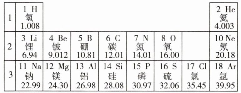 9. 2024四川乐山 元素周期表是学习和研究化学的重要工具。元素周期表的每一个横行叫作一个周期,如图是元素周期表中前三周期元素的部分信息。