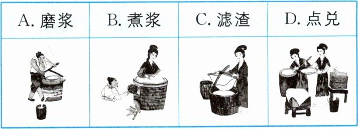 4. 立德树人·传统文化 下列制作豆腐的传统工艺的主要步骤中,涉及过滤操作的是 ()