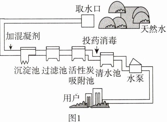 【调查了解】同学们在老师的带领下到当地自来水厂参观自来水的生产过程,了解到自来水的生产过程如图1所示。