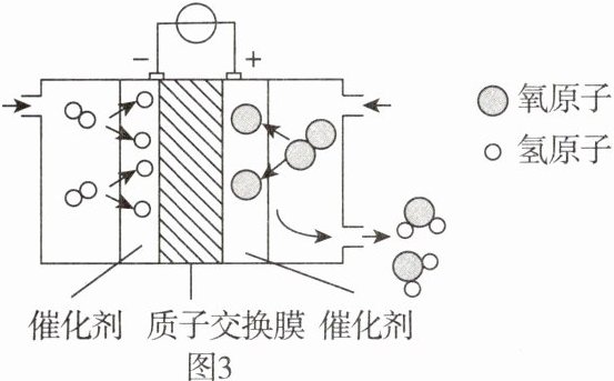 (2)目前,氢燃料电池在公共交通中应用已较为成熟,其工作原理如图3所示,发生反应的符号表达式为____。