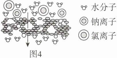 【市场调研】通过与科技人员的访谈,得知海水淡化是解决人类淡水资源短缺的有效措施。海水淡化主要是为了提供____和农业用水等,目前淡化膜法是市场中的主流。石墨烯海水淡化膜工作原理如图4所示,石墨烯海水淡化膜不允许____(填离子符号)透过。