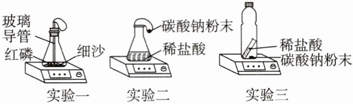 (1)实验一:称量装置和试剂的总质量为$m_{1}$,保持装置密闭,使红磷燃烧,待装置冷却后,再次称量装置和试剂的总质量为$m_{2}$,$m_{1}与m_{2}的大小关系是m_{1}$____$m_{2}$。