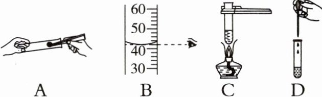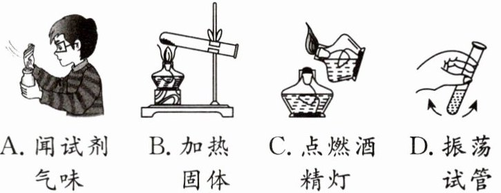 8. 以下是实验课上某同学练习试剂的取用和给物质加热的操作图,请回答下列问题。