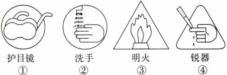 D. 图标④:实验中会用到锋利物品,防止扎伤或割伤