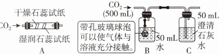 (2)B中通入约500mL$CO_{2}$,观察到B中无明显变化,C中变浑浊,说明500mL$CO_{2}$______(填“部分”或“全部”)溶于50mL水中。C中变浑浊的原因是______