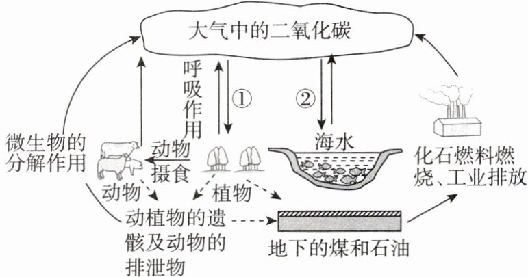 C. 自然界中二氧化碳的消耗可以通过途径②