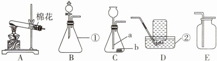 (2) $ {2KMnO_{4} \xlongequal{\triangle} K_{2}MnO_{4} + MnO_{2} + O_{2}\uparrow} $;未等导管口气泡连续且均匀冒出时就开始收集(或开始时集气瓶未装满水,合理即可)