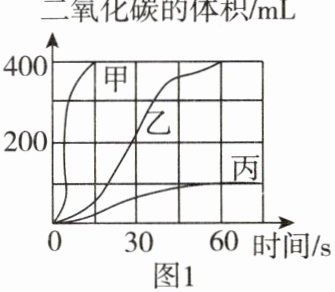 (1)上表中实验③对应图 1 中曲线____(填“甲”“乙”或“丙”)。实验室制取二氧化碳不选择实验①中试剂的原因是____;实验③比实验②反应速率快的原因是____。
