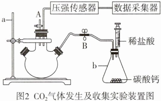 小组同学在老师指导下,利用传感器对是否可用排水集气法收集到$CO_{2}$展开探究,实验装置如图 2 所示:
