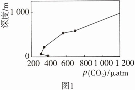 (4)同学们查阅资料获得了北太平洋不同深度的海水中二氧化碳分压$p(CO_2)($二氧化碳含量的一种表示方法)图像,请你分析在0~1000m水深范围内,二氧化碳分压随海水深度增加而增大的原因是____。