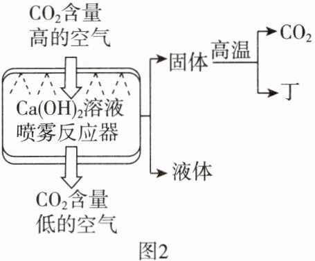 ②流程中可循环利用的物质为丁,请写出丁与水反应转化为$Ca(OH)_2$的化学方程式:____。