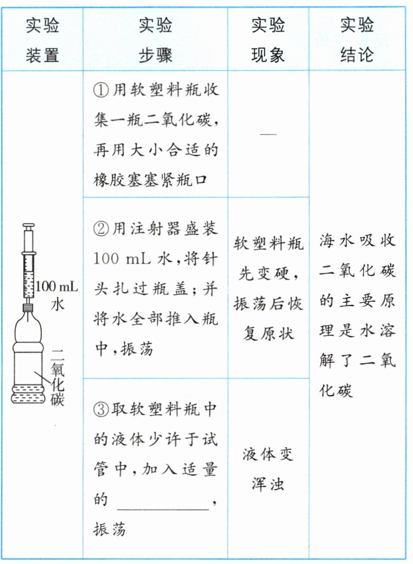 【作出猜想】海水吸收二氧化碳的主要原理是水溶解了二氧化碳。