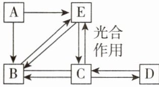 10. $A$、$B$、$C$、$D$、$E$是初中化学常见的物质,$A$、$B$组成元素相同且常温下均为液体,$C$、$E$之间的转化可以实现自然界的碳氧循环,$D$是大理石的主要成分。它们的关系如图所示(“—”表示物质间能发生反应,“→”表示一步转化关系,部分反应物、生成物和反应条件已省略)。