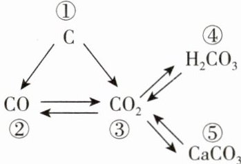 9. $C$、$CO$、$CO_{2}$、$H_{2}CO_{3}和CaCO_{3}$的转化关系如图所示。下列说法正确的是()