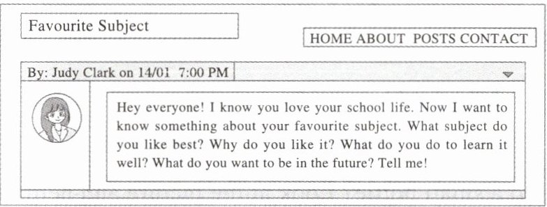 My favourite subject is English. Because I think it's very interesting. I often read English stories and I also listen to English songs. I want to be an English teacher in the future.