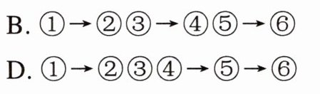 C. ①→②→③→④⑤→⑥ D. ①→②③④→⑤→⑥