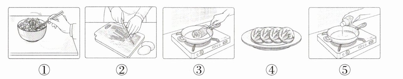 ) 14. 新考法·图文转换 The right order of the following pictures to make potato pancakes is ____.A. ②①⑤③④ B. ①②③④⑤ C. ①④③⑤② D. ⑤③①④②