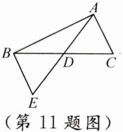 11. 如图,D是$ \triangle A B C $的边BC的中点,连接AD并延长到点E,使$ D E = A D $,连接BE.