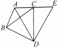 14. (7分)如图,在$△ABC$中,$∠BAC=120^{\circ}$,以$BC$为边向外作等边三角形$BCD$,把$△ABD$绕着点$D$按顺时针方向旋转$60^{\circ}$到$△ECD$的位置(点$A,C,E$三点共线).若$AB=3,AC=2$,求$∠BAD$的度数和$AD$的长.