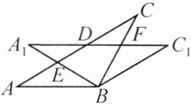 12. 如图,在$△ABC$中,$AB=BC$,将$△ABC$绕点$B$顺时针旋转角$\alpha$,得到$△A_{1}BC_{1}$,$A_{1}B$交$AC$于点$E$,$A_{1}C_{1}$分别交$AC$,$BC$于点$D$,$F$.下列结论:$①∠CDF=\alpha$;$②A_{1}E=CF$;$③DF=FC$;$④AD=CE$;$⑤A_{1}F=CE$.其中,正确的是______
