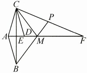 23. (10分)如图,$ \triangle A B M 与 \triangle A C M $关于直线AF成轴对称,$ \triangle A B E 与 \triangle D C E $关于点E成中心对称,点E,D,M都在线段AF上,BM的延长线交CF于点P.