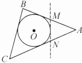 8. 如图,$\triangle ABC$是一张周长为$17\mathrm{cm}$的三角形纸片,$BC=5\mathrm{cm}$,$\odot O$是它的内切圆.小明准备用剪刀在$\odot O$的右侧沿着与$\odot O$相切的任意一条直线$MN$剪下$\triangle AMN$,则剪下的三角形的周长是 (