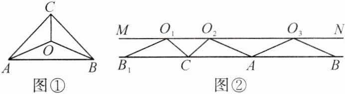 7. 如图①,把$\triangle ABC$剪成三部分,边$AB$,$B_{1}C$,$AC$放在同一直线上,点$O_{1}$,$O_{2}$,$O_{3}$都落在直线$MN$上,如图②所示.若直线$MN// AB$,则点$O$是$\triangle ABC$的 (