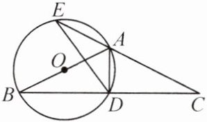 15. (8 分)如图,在$\triangle ABC$中,$AB=AC$,以$AB$为直径作$\odot O$,交$BC$于点$D$,交$CA$的延长线于点$E$,连接$AD$,$DE$.