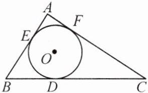 14. (8 分)如图,$\angle A=90^{\circ}$,$\odot O$是$\triangle ABC$的内切圆,内切圆的半径为 1,与三边的切点分别是点$E$,$F$,$D$,$AC=4$,求$AB$,$BC$的长.