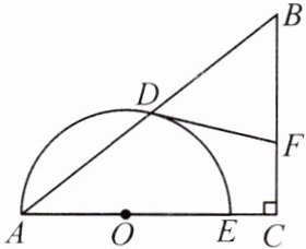 15. (8分)如图,在$Rt△ABC$中,$∠C=90^{\circ }$,点O在AC上,以OA长为半径的半圆O交AB于点D,交AC于点E,过点D作半圆O的切线DF,交BC于点F.