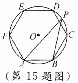 15. 如图,正六边形 ABCDEF 内接于$\odot O$,点 P 是$\widehat{CD}$上的任意一点,则$\angle APB$的大小是______.