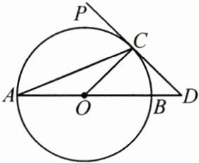 $\therefore OC \perp PD$,即 $\angle OCD = 90^{\circ}$,
