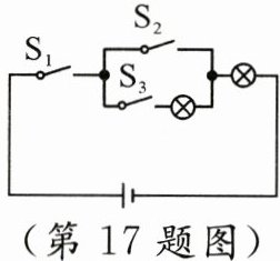 17. 如图,电路连接完好,且各元件工作正常,随机闭合开关$S_{1}$,$S_{2}$,$S_{3}$中的两个,能让两个小灯泡同时发光的概率是______.