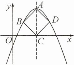 15. 新视角 新定义 如图,抛物线$y = a(x - h)^2 + k(a < 0,k > 0)$的顶点为$A$,对称轴与$x$轴交于点$C$,当以$AC$为对角线的正方形$ABCD$的另外两个顶点$B$,$D$恰好在抛物线上时,我们把这样的抛物线称为“美丽抛物线”,正方形$ABCD$为它的内接正方形。