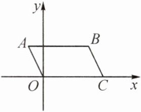 2. 如图,在平面直角坐标系中,点$A(-1,2)$,$OC = 4$,将$□ OABC$绕点O旋转$90^{\circ}$后,点B的对应点$B'$的坐标是
