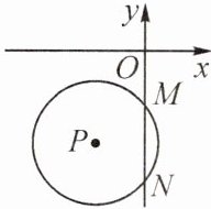 解:过点 $ P $ 作 $ PD \perp MN $ 于点 $ D $,连接 $ PM $。$\because \odot P $ 与 $ y $ 轴交于 $ M(0, -4) $,$ N(0, -10) $ 两点,$\therefore OM = 4 $,$ ON = 10 $,$\therefore MN = ON - OM = 10 - 4 = 6 $。$\because PD \perp MN $,$\therefore DM = DN = \frac{1}{2}MN = 3 $。$\because$ 点 $ P $ 的横坐标为 $ -4 $,即 $ PD = 4 $,$\therefore$ 在 $ \text{Rt} \triangle PMD $ 中,由勾股定理,得 $ PM = \sqrt{PD^{2} + DM^{2}} = \sqrt{4^{2} + 3^{2}} = $