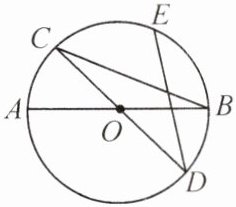 3. 如图,AB,CD是$\odot O$的两条直径,E是劣弧$\widehat {BC}$的中点,连接BC,DE.若$∠ABC=22^{\circ }$,则$∠CDE$的度数为(