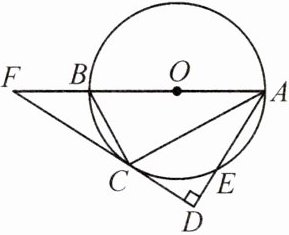 12. (2024·山东东营)如图,$△ABC$内接于$\odot O$,AB是$\odot O$的直径,点E在$\odot O$上,点C是$\widehat {BE}$的中点,$AE⊥CD$,垂足为点D,DC的延长线交AB的延长线于点F.