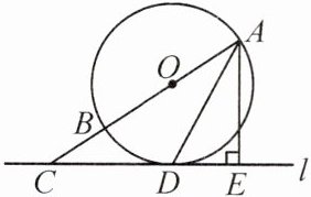 11. (2024·甘肃临夏)如图,直线l与$\odot O$相切于点D,AB为$\odot O$的直径,连接AD,过点A作$AE⊥l$于点E,延长AB交直线l于点C.